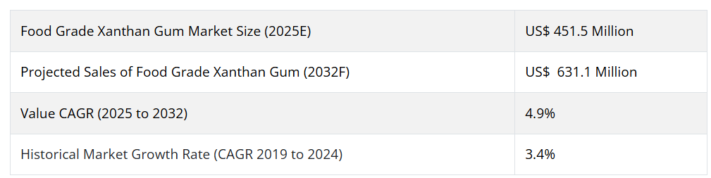 - グローバル食品グレードキサンタンガム市場見通し:歴史的(2019年~2024年)および予測(2025年~2032年)