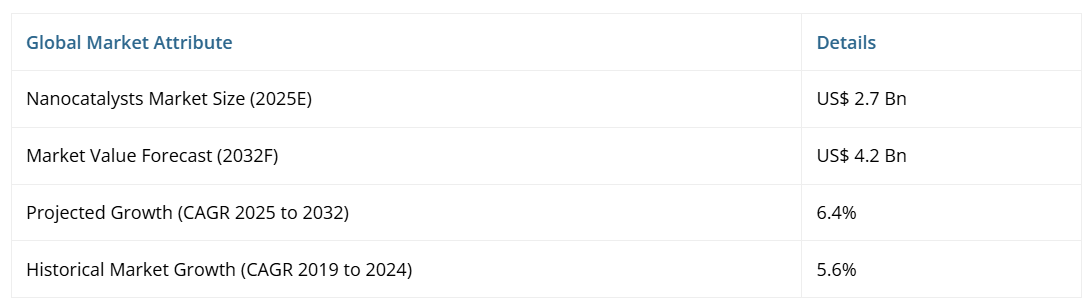 - 世界のナノ触媒市場スナップショット 2025年および2032年