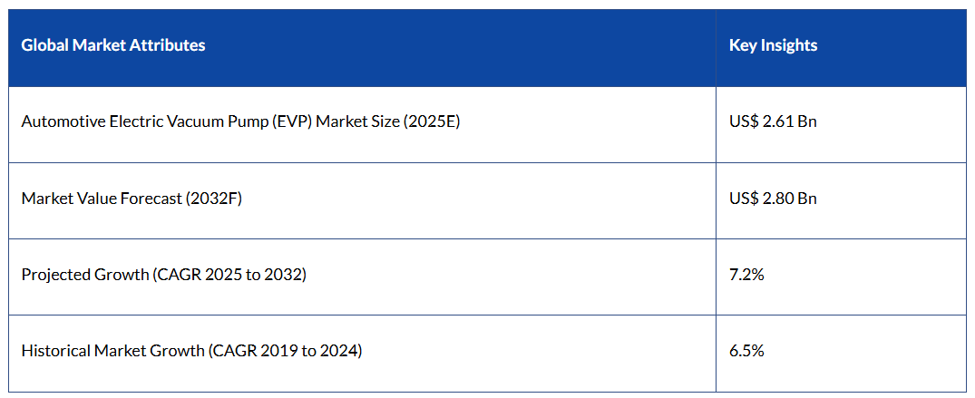- 世界の自動車用電気真空ポンプ(EVP)市場概況:2025年および2032年