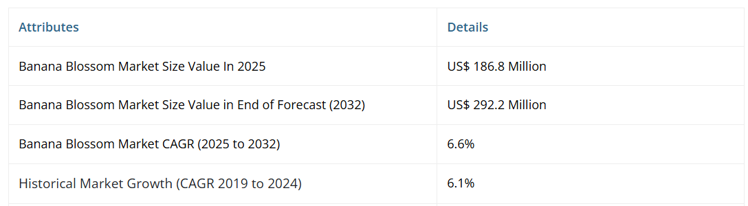ヨーロッパバナナブロッサム市場展望:過去実績(2019年~2024年)および予測(2025年~2032年)