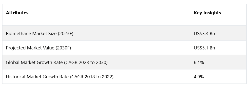 世界的なバイオメタン市場は、年平均成長率(CAGR)6.1%で拡大し、2023年の33億ドルから、2030年末には51億ドルに増加すると予測されています。