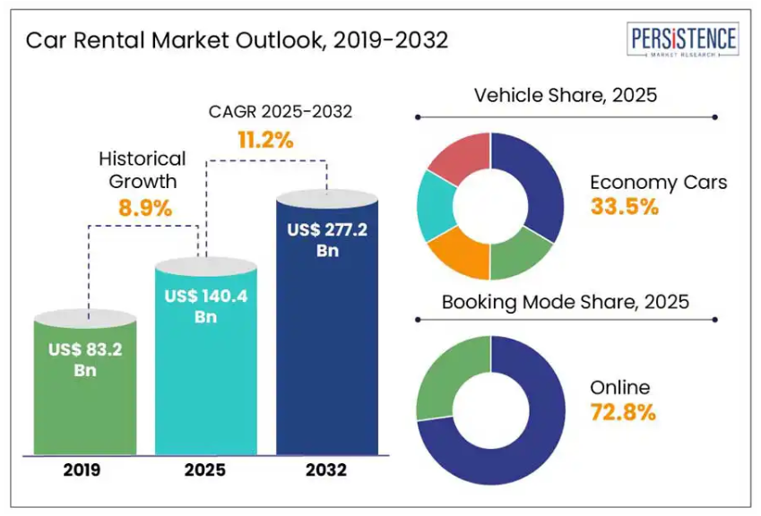 - 世界のレンタカー市場概況(2025年および2032年)