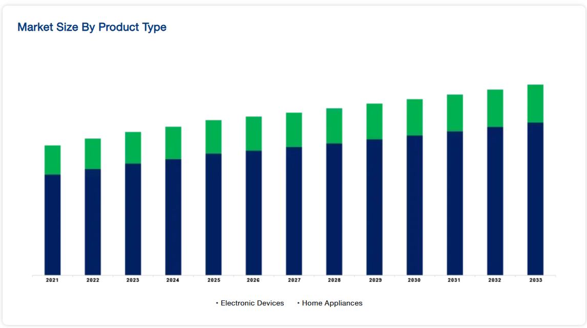 世界の電子機器市場規模・シェア・動向分析レポート(2025-2033):電子機器、家電製品