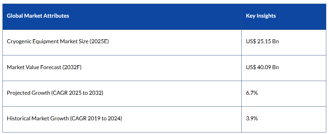 Persistence Market Researchの調査によると、世界の極低温装置産業は2019年から2024年までの期間において、年平均成長率(CAGR)3.9%を記録しました。2020年と2021年には、生産能力の拡大が需要を上回り、供給問題を引き起こしたため、世界の極低温装置の需要は混乱に見舞われました。COVID-19のパンデミックは、この不均衡をさらに悪化させ、供給過剰を招きました。しかし、医療分野での需要増加を背景に、極低温冷凍庫の販売は急増すると予測されています。