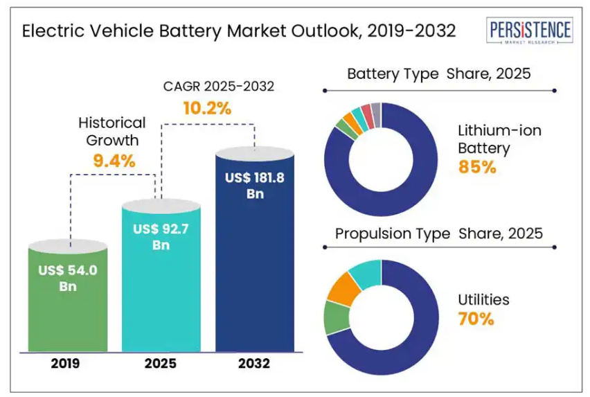 Persistence Market Research社の調査レポートによると、世界の電気自動車(EV)用バッテリー市場は、電気自動車分野の急速な拡大に牽引され、大幅な成長を遂げています。