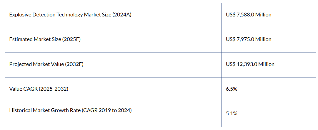 爆発物検知技術の需要分析(2019-2024年)対 市場予測(2025-2032年)