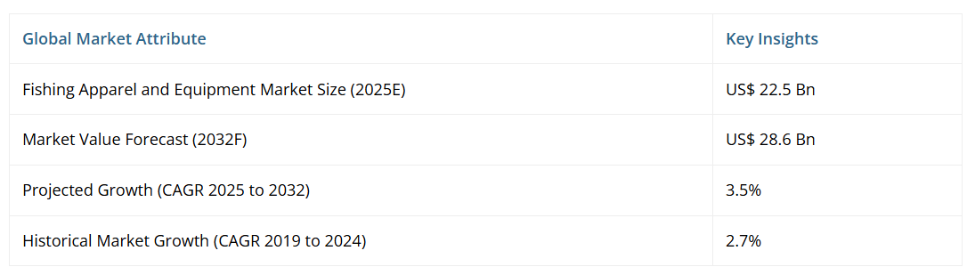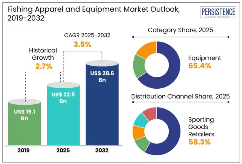 - 世界の釣り用アパレルおよび機器市場概況、2025年および2032年