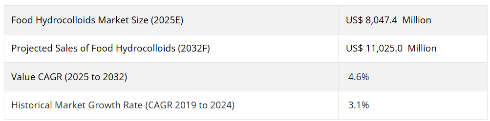 - ラテンアメリカの食品用親水コロイド市場の見通し:過去(2019年~2024年)および予測(2025年~2032年