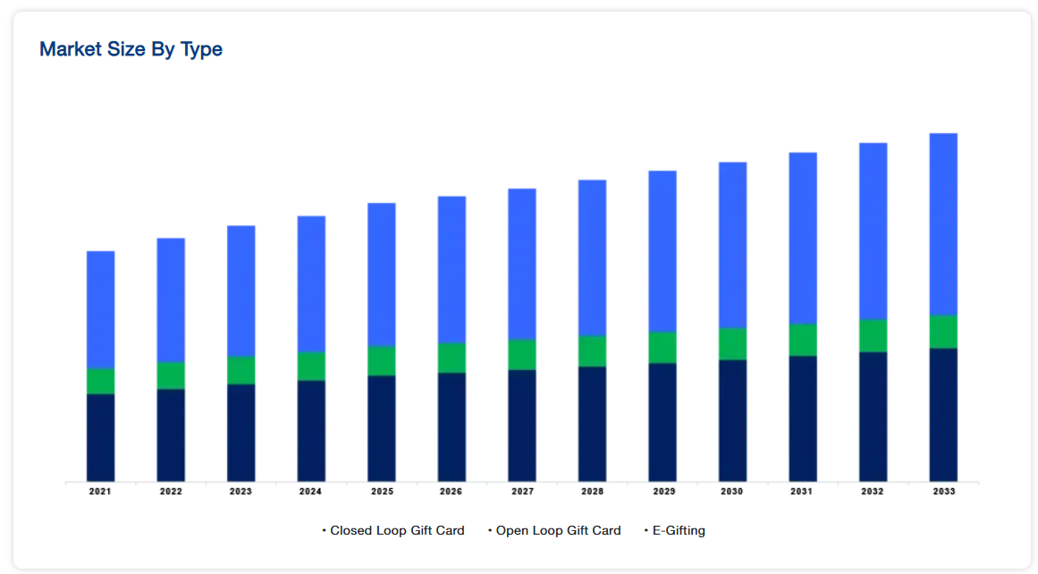 今日の企業にとって、ギフトカードは最も受け入れやすい収益手段のひとつです。技術進歩の進展により、ギフトカード会社はより多くの収益を上げられるようになりました。ギフトカードの開発により、企業は自社製品の差別化と魅力の向上を図ることができます。例えば、ギフトカードの追跡機能により、消費者はオンラインでギフトカードを購入したり贈ったり、カードの有効期限を確認したりできます。さらに、受取人はギフトカードを慈善団体に寄付することも可能です。受取人が有効期限内にカードを使用しない場合、発行者は料金を請求されません。このような顧客体験に焦点を当てた多様な新サービスにより、ギフトカード市場は拡大しています。