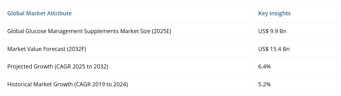 - 世界の血糖管理サプリメント市場概況(2025年および2032年)