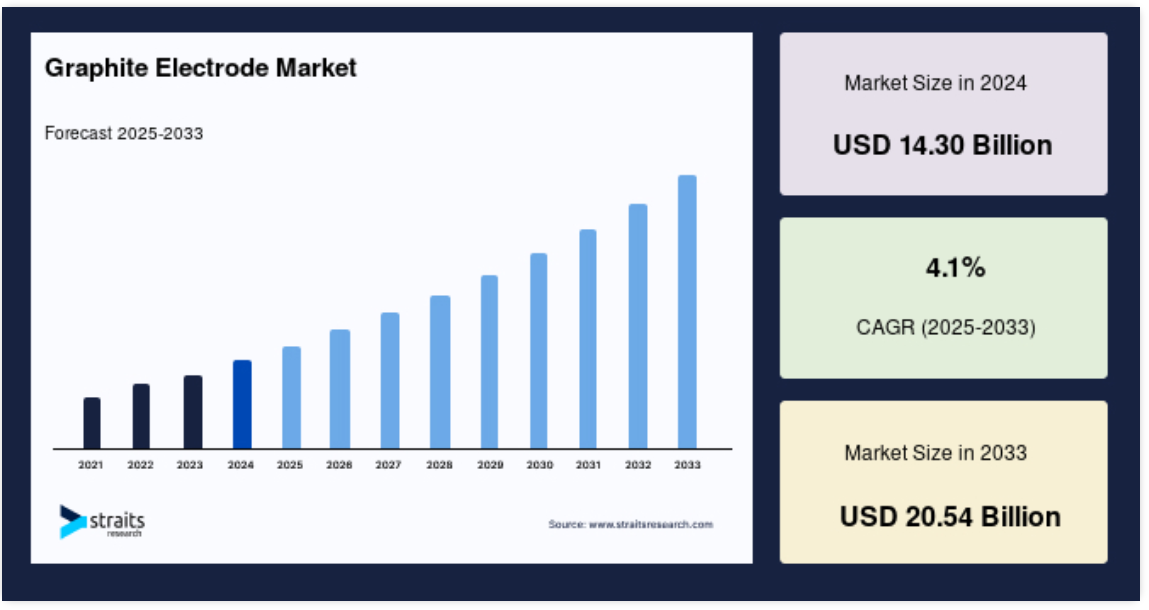 黒鉛電極の世界市場規模は、2024年に143.0億米ドルと評価され、2025年には148.9億米ドル、2033年には205.4億米ドルに達すると予測され、予測期間中(2025年~2033年)の年平均成長率は4.1%で推移すると予測されています。