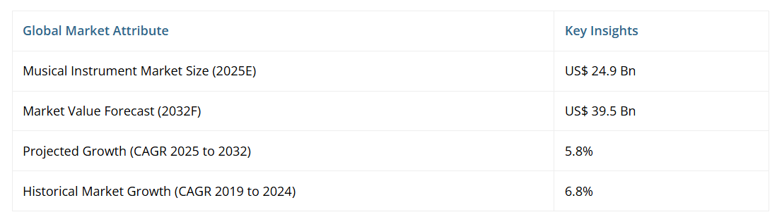 - ヨーロッパ楽器市場の見通し:過去実績(2019年~2024年)および予測(2025年~2032年)