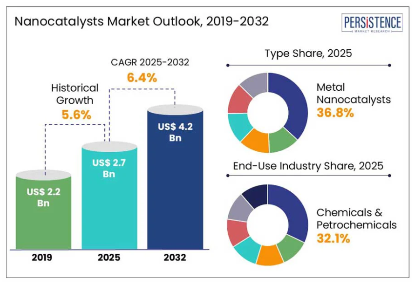 Persistence Market Researchの報告書によりますと、ナノ材料が持つ触媒効率、選択性、耐久性を高める特異的な性質に牽引され、ナノ触媒産業は広範な触媒産業内において重要なセグメントとして台頭してまいりました。