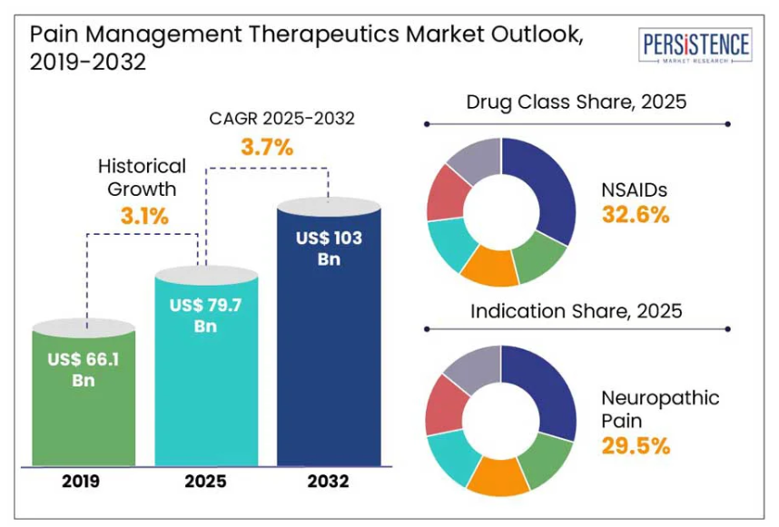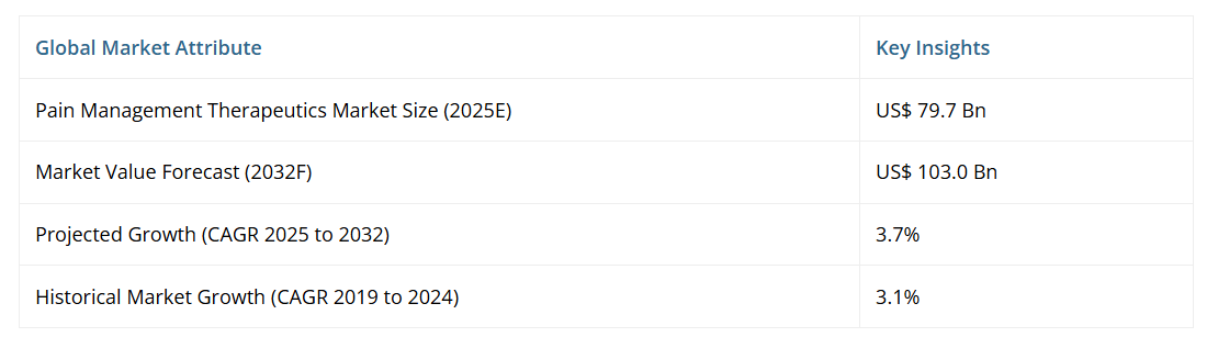 - 世界の疼痛管理治療薬市場概況(2025年および2032年)