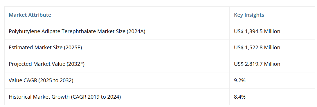 ヨーロッパポリブチレンアジペートテレフタレート市場展望:過去実績(2019年~2024年)および予測(2025年~2032年)