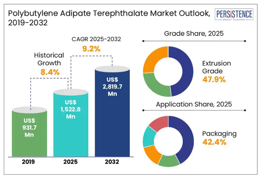 北米ポリブチレンアジペートテレフタレート市場展望:過去実績(2019年~2024年)および予測(2025年~2032年)