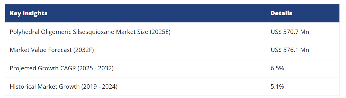 - 北米多面体オリゴマーシルセスキオキサン市場見通し:過去実績(2019-2024年)および予測(2025-2032年)