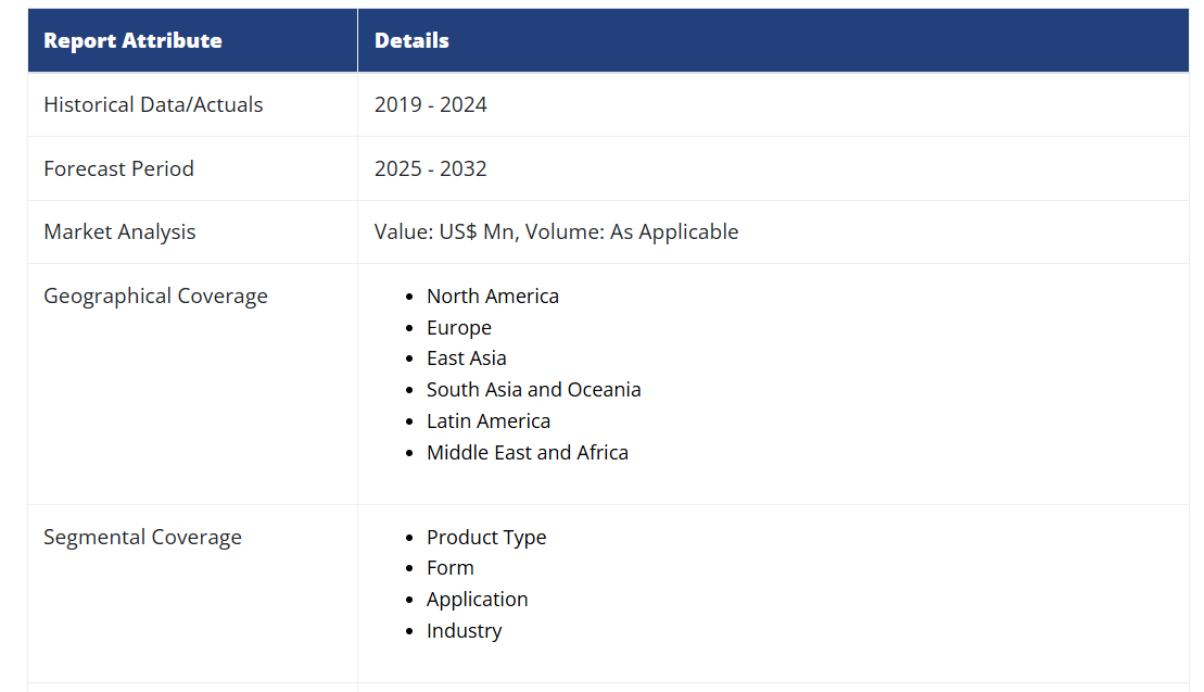 - 中東・アフリカ市場規模(百万ドル)および数量(単位)予測、形態別、2025-2032年