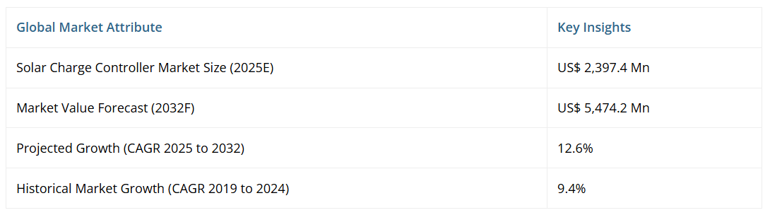- 世界のソーラー充電コントローラー市場概況、2025年および2032年