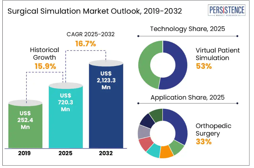 パーシステンス・マーケット・リサーチの報告書によりますと、外科シミュレーションの急速な成長は、リスクのない実践的トレーニングへの需要の高まりと、VR、AR、触覚技術の発展によるものです。