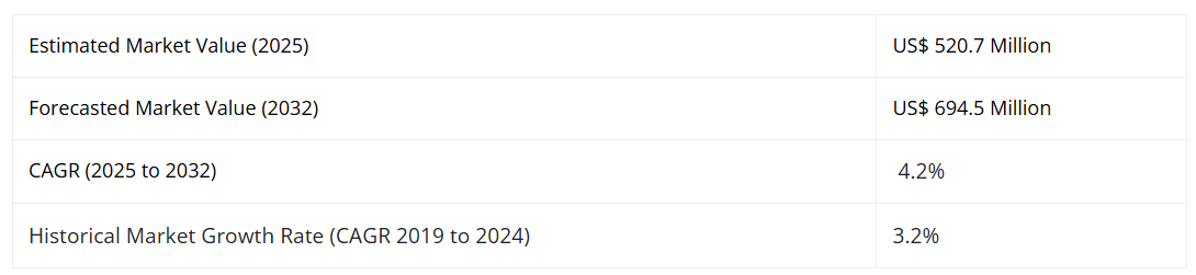 世界の創傷用スプレー市場は、2025年に5億2070万ドルの規模を記録し、2032年末までに4.2%の年平均成長率(CAGR)で拡大し、6億9450万ドルに達すると予測されております。