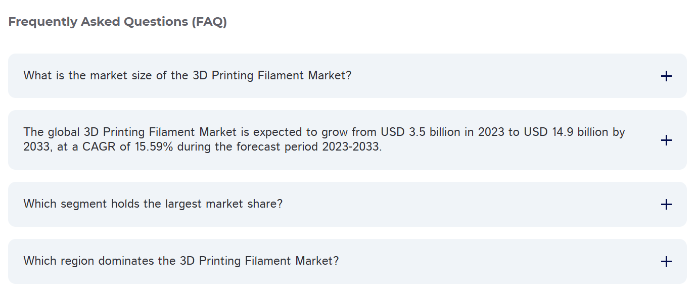 • 世界の3Dプリンティングフィラメント市場は、2033年までに149億米ドルに達すると予測される。