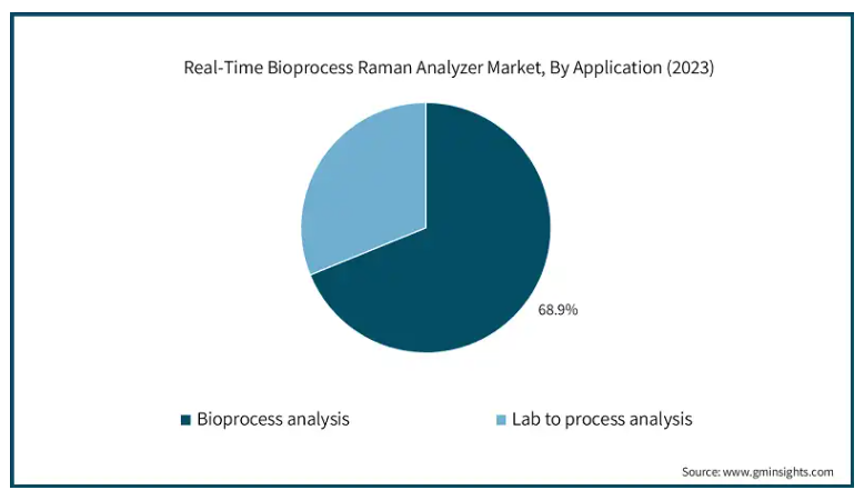 リアルタイム・バイオプロセス・ラマンアナライザー市場は、アプリケーションに基づき、バイオプロセス分析とラボからプロセス分析に区分されます。2023年の市場シェアは、バイオプロセス分析セグメントが68.9%で圧倒的。