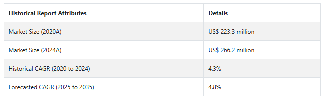 中国の市場は2035年に年平均成長率5.3%で7660万米ドルに達すると推定されています。この市場は、2025年から2035年にかけて3,090万米ドルの絶対機会を生み出すと予測されています。