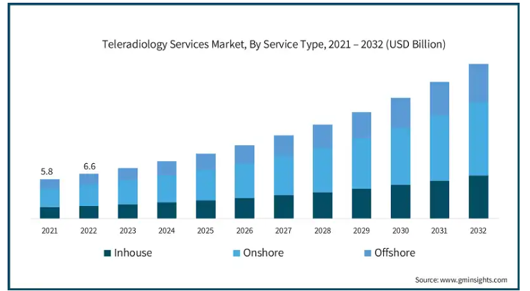 さらに、相対的な報告時間の短縮と画像の初期評価の向上も、オンショアTeleradiologyサービスの発展を後押ししています。オンショアサービスは、オフショアサービスよりも地域医療に接する機会が増えるため、予測値が高くなる傾向があります。また、オンショア遠隔画像診断サービスには文化的な側面もあります。オンショアサービスプロバイダーは、病院情報システムと電子カルテ(EHR)システムの統合で明確な優位性を持っています。