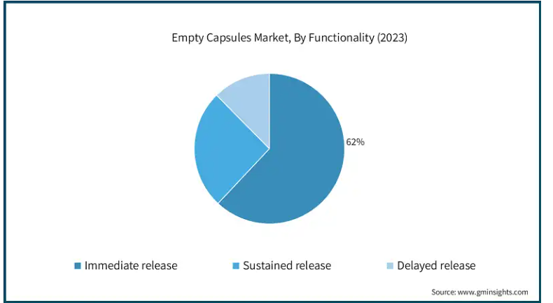機能性に基づいて、世界市場は即時放出、徐放、遅延放出に分類されます。2023年の市場シェアは、即時放出セグメントが62%と最も高い。