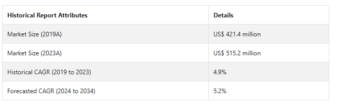 アメリカの市場規模は2024年に1億2,300万米ドルとなり、2034年まで年平均成長率4.0%で拡大すると予測されています。この市場は、2024年から2034年までに5,820万米ドルの絶対的機会を生み出すと予測されています。