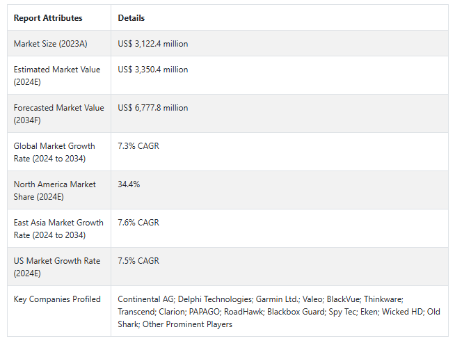 Fact.MRによると、事故記録装置の市場規模は2024年に33億5,040万米ドルになると予測されています。2034年までの年平均成長率(CAGR)は7.3%で、予測期間(2024年~2034年)末には67億7,780万米ドルに達すると予測されています。