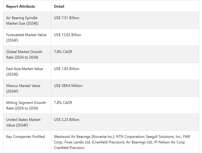 エアベアリングスピンドルの市場展望(2024年~2034年)