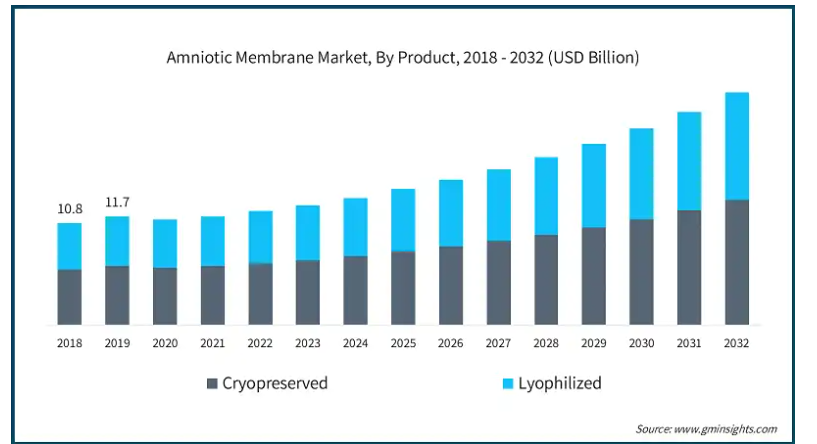 脱水羊膜製品の登場は、その保存期間の延長、保管や輸送の容易さ、凍結保存されたものと同等の治療効果を考慮し、市場をさらに活性化させています。