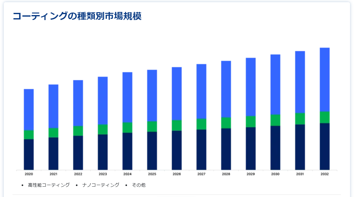 コーティング剤のタイプ別(2021-2033年)