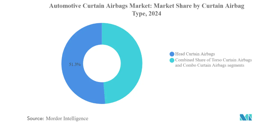 カーテンエアバッグタイプ別:頭部重視設計が主導権を維持