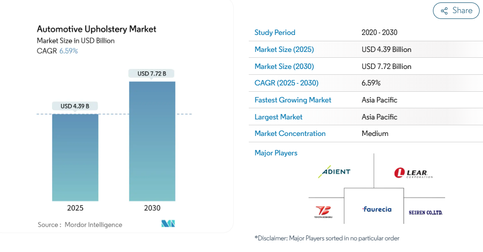 こうした動向を踏まえ、アジア太平洋地域の自動車内装材市場は近い将来、大幅な成長が見込まれています。