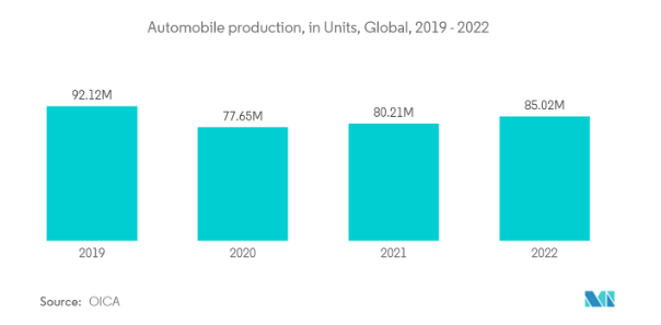 - さらに、中国における自動車生産の成長は、ゴムタイヤの需要を促進し、ブチル化ヒドロキシトルエン市場に上昇需要をもたらす可能性が高いです。例えば、2022年の自動車生産台数は約2,70,20,615台で、2021年比で3%の増加。