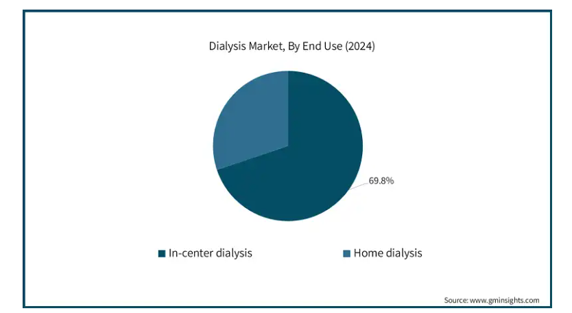 さらに、腹膜透析と在宅血液透析の両方を含む在宅透析のトレンドが増加しており、患者が治療管理の自立性を求めるにつれて、さらなる成長が見込まれています。患者さんは、医療機関に頻繁に通うストレスを感じることなく、治療を管理できるようになりました。また、携帯型透析装置により、自宅での治療がより安全で効果的になりました。さらに、経済先進国で採用されている償還政策も、在宅透析の普及に貢献しています。