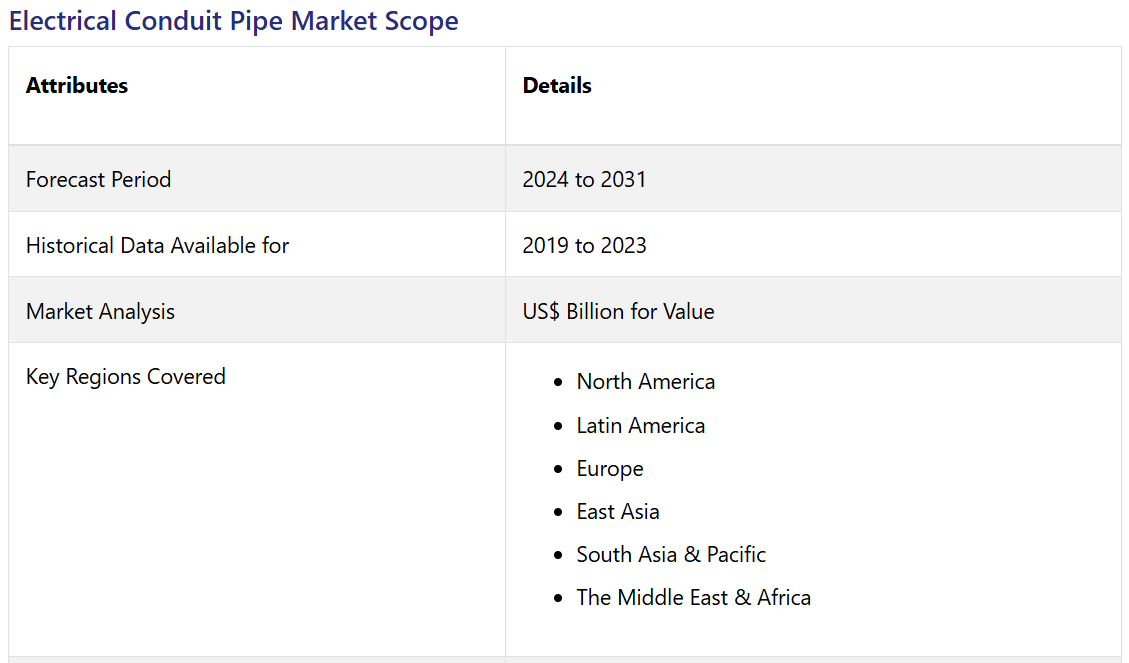 Electrical Conduit Pipe Market by Product Type (Rigid Conduit Pipe, Flexible Conduit Pipe), End-use Industry (Residential, Commercial, Industrial), and Region for 2024 to 2031