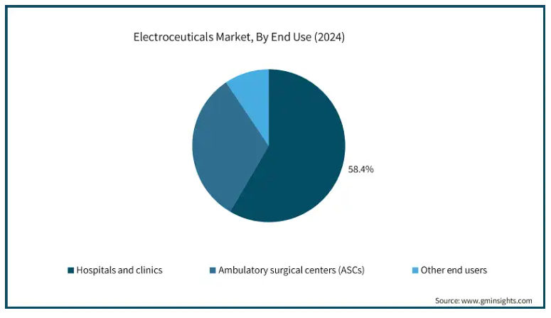 エンドユーザー別では、病院・診療所、外来手術センター(ASC)、その他のエンドユーザーに分類されます。病院・診療所セグメントは、2024年の売上高シェア58.4%で電気治療薬市場を支配。