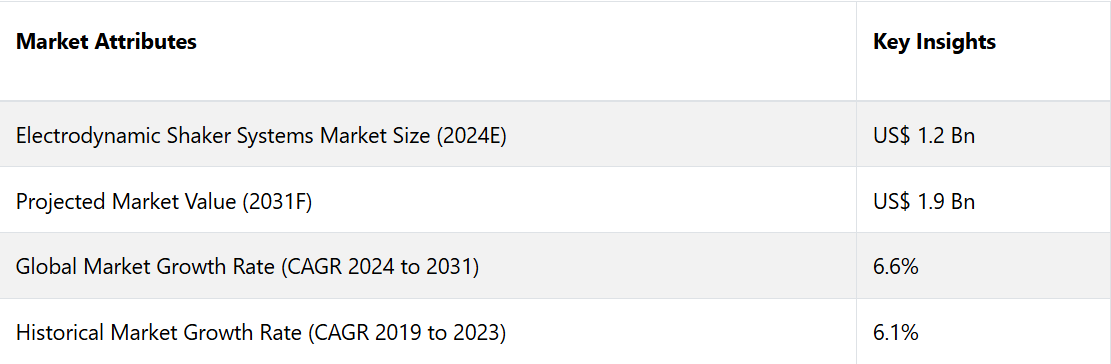 電磁式加振器システム市場は、2024年の12億米ドルから2031年には19億米ドルに増加すると推定される。2024年から2031年の予測期間において、市場は年平均成長率(CAGR)6.6%を記録すると予測される。