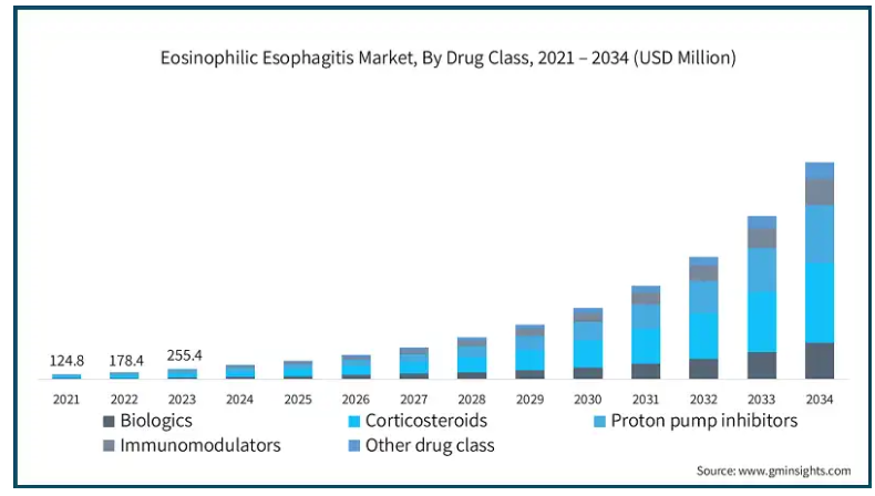 患者はより良い長期的な管理方法を求めるようになり、医療提供者は効果的な解決策の研究開発に時間を費やすようになっています。さらに、好酸球性食道炎の病態生理、診断、治療に関する研究への投資も増加しています。