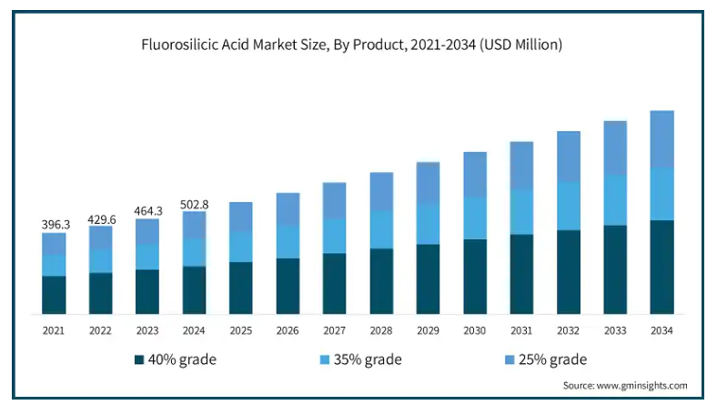 水道水フロリデーションにおけるフルオロケイ酸のニーズの高まりは、フルオロケイ酸が歯の健康維持に役立っていることを示しており、その結果、近代化された水道水供給で一般的に使用されています。さらに、歯科用途の市場拡大は、非侵襲的歯科治療におけるその重要性をさらに高めています。同時に、繊維市場の成長も、いくつかの繊維プロセスで使用されるフルオロケイ酸の消費を促進します。