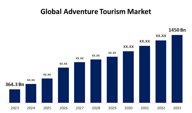 世界のアドベンチャーツーリズム市場規模は、2023年から2033年の年平均成長率(CAGR)14.81%で成長し、2033年までに1450億米ドルを超えると予測されています。