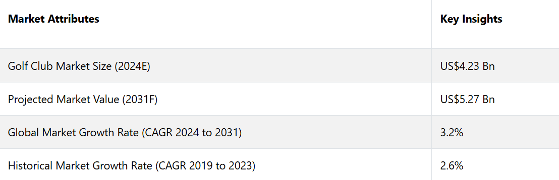 Golf Club Market by Product Type (Fairways, Irons, Wedges, Putters), Distribution Channel (Direct, Indirect), and Region for 2024 to 2031