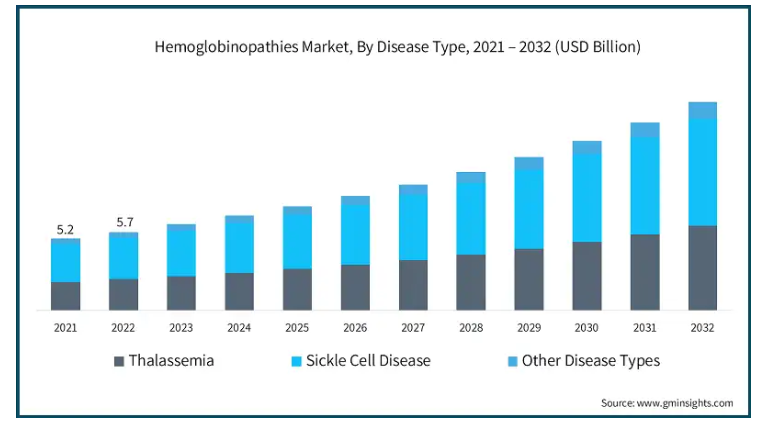 北米のヘモグロビン異常症市場は年平均成長率10%で成長し、2032年末までに57億米ドルに達すると予想されています。
