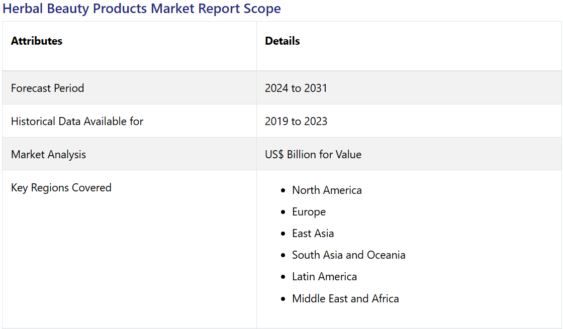 12. 中東およびアフリカのハーブ美容製品市場の見通し:2019年~2023年の過去実績および2024年~2031年の予測