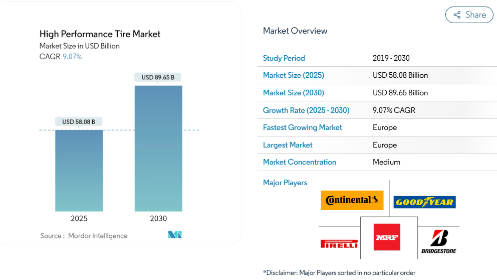 市場シェア拡大を目指す競合企業にとって、専門的な製品提供と強力な顧客サービス能力による差別化は大きな機会となります。成功要因としては、強固な流通ネットワークの構築、自動車メーカーとの強固な関係構築、顧客エンゲージメント強化のためのデジタル能力への投資などが挙げられます。市場の将来の競争環境は、環境基準や安全要件に関する規制変更の可能性に対応しつつ、性能と持続可能性の両面におけるエンドユーザーの要求の高まりに対応する企業の能力によって形作られるでしょう。高性能タイヤの専門的な性質から代替品のリスクは比較的低いものの、メーカーは競争優位性を維持するため、継続的なイノベーションが求められます。