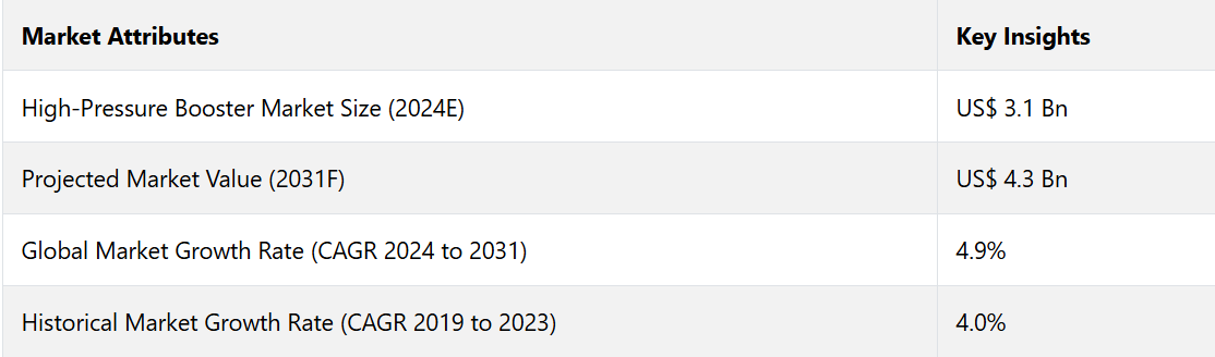 高圧ブースターの売上は、2024年から2031年の予測期間に年平均成長率(CAGR)4.9%で成長すると推定されています。